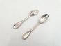E. CARON, XXe siècle, vers 1950-1960 : suite de 12 cuillers à moka en argent 950 mil. modèle filet contour. Ancienne Minerve 1er titre et poinçon de Maître EC soleil levant. Poids : 185.5 g. L. 10.6 cm. TBE. Non chiffrées. Ecrin légèrement défraichi de détaillant.