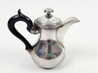 JEAN-FRANCOIS VEYRAT, XIXe siècle : verseuse mignonette en argent 950 mil. uni à moulures de filet et fond plat, le bec marabout, anse volute en ébène noirci. Minerve de 1838 et poinçon de Maître (1832-1840). Non chiffrée. Poids : 138.2 g. H. 11 cm.