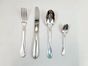 RAVINET D’ENFERT et SAGLIER FRERES, XXe siècle : ménagère de 49 pièces en métal argenté modèle fliets rubanés comprenant 12 grandes fourchettes, 12 grandes cuillers, 12 cuillers à café, 12 grands couteaux lames inox et 1 louche. Ecrin SAGLIER FRERES et écrin RAVINET D’ENFERT. TBE. Quasi-neuf. Non chiffrée.