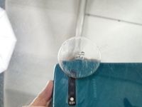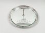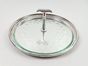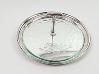 SAINT-MEDARD, XXe siècle : plateau tournant à fromages, modèle rond en métal argenté à frise de perles, sur-plateau en verre et prise en T. Signé. Diam. 31.6 cm. H. 12 cm.
