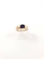 Bague jonc CHAUMET en or gris 750 mil ornée d’une cordiérite ovale en demi serti clos (TDD : 52,5) (usures). Signée et numérotée. 10,4 g brut.