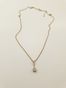 Pendentif en or gris 750 mil (diamant TA de 0,45 ct environ), sur collier à maillons forçat en or gris 750 mil avec chaînette de sécurité (longueur : 43 cm). 5,8 g brut.