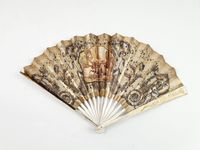 2 Eventails publicitaires « Club Athlétique de la Sté Générale - Maisons Laffitte » et « Le Pré Catelan, Armenonville, Café de Paris », brins en bois laqué blanc, les feuilles à décor imprimé. Le premier marqué « Eventails Pernot », XXe siècle. Longueurs : 40cm. On y joint un étui cartonné incomplet. (Déchirures, un brin accidenté).