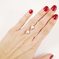 Paire de boutons d’oreilles TIFFANY & Co. « Signature Pearls » en or gris 750 mil. ornés chacun d’une perle de culture de 7,2 mm et d’un diamant brillanté de 0,08 carat environ, signée (manque systèmes). 2,2 g. brut