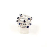 Bague multi-rangs en or gris 750 mil. sertie de pierres blanches et bleues imitations. (TDD : 53). 9,9 g. brut