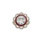 Bague en or 750 millièmes et platine 850 millièmes ornée au centre d'un diamant rond de taille ancienne serti clos dans un double entourage de pierres rouges calibrées et diamants taillés en rose. (Égrisures et marque de mise à grandeur). Travail vers 1910. Tour de doigt : 50. Poids brut : 4,7 g. Poids approximatif calculé du diamant principal : 1,70/1,90 ct