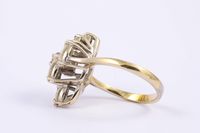 Bague en or gris 750 millièmes, le centre orné de diamants navettes et ronds de taille brillant. (Manque à deux diamants et marque de mise à grandeur). Tour de doigt : 55 ½. Poids brut : 5,5 g