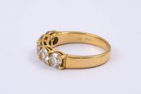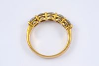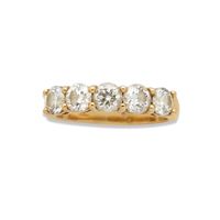 Bague en or jaune 750 millièmes ornée au centre d'une ligne de cinq diamants ronds de taille brillant.Tour de doigt : 57. Poids brut : 5,3 g