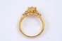 Bague en or jaune 750 millièmes ornée au centre d'un diamant rond de taille brillant entre deux diamants poire. Tour de doigt : 55. Poids brut : 4,2 g. Accompagné d'un rapport d'analyse diamant du L.F.G. n° 335897 du 30/03/2018 précisant : - Masse : 1,01 ct. - Couleur : H - Pureté : VVS2 - Fluorescence : aucune - Dimensions : 6,74-6,82 x 3,59 mm