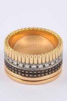 BOUCHERON, modèle « Quatre Classique Large ». Bague bandeau en or 750 millièmes de plusieurs tons figurant des anneaux, certains gravés en PVD brun ou orné d'une ligne de diamants ronds de taille brillant. (Usures). Signée et numérotée. Tour de doigt : 54. Poids brut : 15,8 g