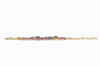 Bracelet articulé en or rose 750 millièmes, le centre orné de pierres violettes et vertes dans des entourages de diamants ronds de taille brillant. Longueur maximum : 22 cm Poids brut : 38,8 g