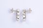 CARTIER. Paire de boucles d'oreilles en or gris 750 millièmes, chacune à décor de navette ornée de trois diamants ronds de taille brillant. Système pour oreilles percées. Signées et numérotées. Hauteur : 1,8 cm. Poids brut : 7,3 g