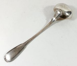 CHRISTOFLE, MAROT, XXe siècle, années 1960 : suite de 12 couverts à poisson et son couvert à servir en métal argenté, modèle mouluré de filet à petite agrafe coquille. Signé. Poinçon OC au cavalier période 1935-1983. Rayures d’usage. BE général. Ecrin d’origine de la maison de détaillant JEAN ETE.