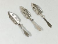 EMILE PERNOT, PONTARLIER, début du XXe siècle : suite de 3 cuillers à absinthe en métal nickelé perforé à décor ajouré de perles et losanges. La spatule chantournée signée. L. 16 cm. Rayures d’usage. La maison Emile Pernot, depuis1890, plus que centenaire, a une lignée directe ancrée dans les origines de la fameuse liqueur et de son rituel. La première étiquette d’Extrait d’Absinthe « Absinthe Pernot » apparaît le 12 octobre 1889. De nombreuses autres marques sont déposées, notamment « Pernot Emile ». C’est son fils, Emile-Joseph Pernot, rescapé de Verdun, qui déposera plus tard la célèbre marque « Emile Pernot ». La maison existe toujours.