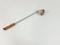 Eteignoir à bougie de la fin du XIXe siècle en métal argenté, sa tige rigide, son embout tulipe et son manche en os tourné (fente et taches). L. 29.5 cm. l’intérieur de la tulipe est marqué R.F. dans un cartouche (pour République Française ?)