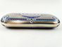 IVAN KHLEBNIKOV, vers 1888, MOSCOU : étui à cigarettes en argent 916 mil. à décor en émail bleu, blanc, vert et ocre rouge de lambrequins, chevrons et rosaces sur fond guilloché, le couvercle à monogramme en cyrillique avec les initiales F.D. Intérieur vermeillé avec envoi en cyrillique daté 1888. Poinçons russes d’orfèvre et de ville, titre, date et essayeur sur la tranche inférieure. Cygne français. Poids : 160 g. Dim. 2.5 x 11.8 x 6.4 cm. TBE. L'envoi concerne un certain Monsieur Demours, qui devait être un médecin français. Le message est fait en mémoire de l'aide apportée au dispensaire pour enfants Sainte Sophie de l'Institut Catherine 1888. Nous sommes à l'époque du règne du Tsar Alexandre III et du rapprochement avec la France. La maison Khlebnikov ouvre en 1871 son usine à Moscou et emploie environ 200 artisans. Fournisseur de la cour impériale officiellement en 1879 et d'autres maisons royales (Danemark, Pays-Bas, Serbie et Monténégro), la maison est réputée pour son travail sur l'émail cloisonné et le plique-à-jour ainsi que pour sa réinterprétation de l'art populaire traditionnel russe.