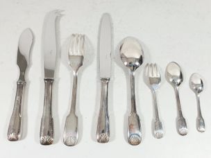 JEZLER, SUISSE, XXe siècle : plat ovale en argent 800 mil. modèle contour à moulures de filet et doucine. Poinçons de titre et signature. Numéroté 8157/75 7. Cygne français. Poids : 1350 g. dim. 49.8 x 33 cm. Rayures d’usage. Non chiffré. BE. La maison suisse JEZLER e été fondée en 1822.