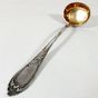 LETTONIE, XXe siècle, période soviétique : louche en argent 875 mil. et vermeil à spatule rocaille piriforme à filet, le culot à coquille déchiquetée. Poinçons de la période soviétique (1946-1990) et moderne (depuis 1990). Poids : 232.6 g. L. 33.3 cm. Légères rayures. Non chiffrée. TBE.