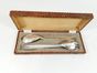 MARS, Années 1940 : couvert à salade en métal argenté, modèle à moulures de filets et la spatule à rouleau. Ecrin non d’origine. L. 26 cm. Légères rayures. Non chiffré. + 1 cuiller à sauce en inox (boîte COUZON).