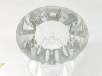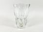 SAINT-LOUIS, vers 1950-1960 : Vase CAMARET en cristal taillé blanc transparent. Cachet sous la base. H : 25 cm. Diam. 17 cm au col. Petits éclats au col et au pied, micro-rayures, une arête frottée.