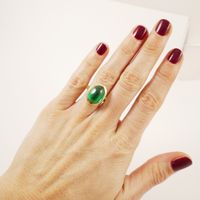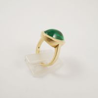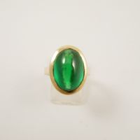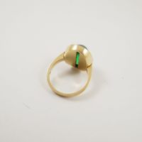 Bague en or 585 mil. ornée d’une pierre imitation verte taillée en cabochon (TDD : 53) (petits éclats). 8,4 g. brut