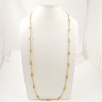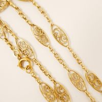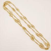 Collier en or 750 mil. à maillons filigranés (longueur : 82 cm) (déformations). 29,8 g.