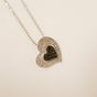 Collier en or gris 750 mil. composé d’une fine chaîne et d’un motif cœur serti de diamants 8/8 blancs et noirs (longueur : 43 cm environ) (hauteur : 1,8 cm). 4 g. brut