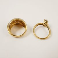 Deux bagues deux ors 750 mil. dont une bandeau (diamants 8/8) (TDD : 51) (manque deux diamants), et une « toi et moi » (diamants brillantés) (TDD : 53) (manque un diamant). 11,4 g. brut