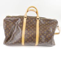 Louis VUITTON année 2007. Sac « Keepall Bandoulière » 55cm en toile Monogram et cuir naturel, fermeture éclair à double curseur, double poignée, anse bandoulière amovible réglable. Très bon état (légères usures, traces).