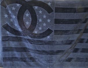SAINT LAURENT année 2013. Bracelet en cuir noir surmonté d’une plaque en métal argenté. Bon état (légères usures).