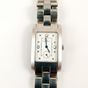 Bracelet-montre d’homme BAUME et MERCIER en acier, boîtier rectangulaire, cadran blanc à index carrés et en chiffres arabes, cadran secondaire à 6H, mouvement à quartz, avec bracelet et boucle déployante en acier. Signé et numéroté. (Légère usure d’usage) (Longueur : 17 cm environ).