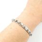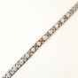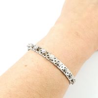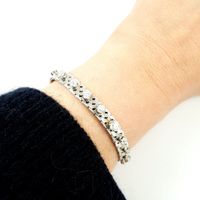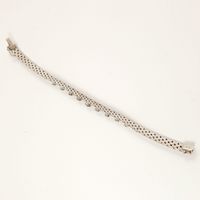 Bracelet ruban en or gris 750 mil. partiellement amati rehaussé de diamants TA (0,40 carat, 0,20 carat et 0,02 carats environ)) en serti griffe en chute, avec huit de sécurité. (Egrisures, petits manques de matière). (Longueur : 17,2 cm environ). 24,8 g. brut.