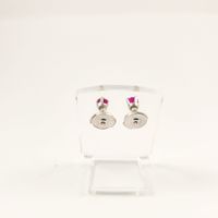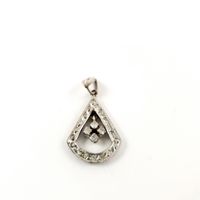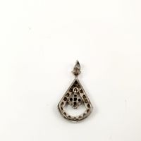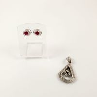 Paire de boutons d’oreilles en or gris 750 mil. sertis de pierre rose imitation avec système ALPA en or gris 750 mil.Pendentif en argent 800 mil. ajouré serti de d diamants taille 8/8 et TA (égrisures, petits manques de matière) (hauteur : 3 cm environ) (poids : 2,3 g. brut). 3,9 g. brut total.