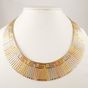 Demi-parure trois or 750 mil. composée d’un collier collerette et d’une paire de boucles d’oreilles (longueur : 43 cm environ) (hauteurs : 5,7 cm) (fermoir défectueux). 86 g.
