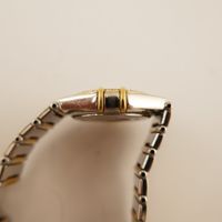 E) Art. 524 bis du CGI al. c : Bracelet-montre de dame OMEGA « Constellation Iris My Choice » en acier et or 750 mil. Boîtier rond (diamètre 25 mm environ), lunette en or 750 mil. diamantée. Cadran en nacre à index dorés en applique ornés de pierres de couleur. Mouvement à quartz 1456. Fond clippé. Bracelet en acier et or 750 mil. à boucle déployante signée et siglée. Poignet : 16 cm environ. Poids brut : 52,9g brut. Sans écrin, ni papiers. (E) art 524bis du CGI al. C