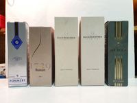 5 bouteilles de CHAMPAGNES : 2 ROEDERER brut 1ER, 1 RUINART brut, 1 DEUTZ brut, 1 POMERY brut . Avec coffrets défraichis.
