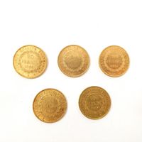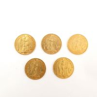 5 pièces de 20 FRF en or 900 mil. 32,2 g.