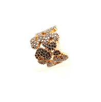 Bague bandeau STERN en or rose 750 mil. à motif floral pavé de diamants brillantés noirs et blancs (poinçon de maître). TDD : 51. 8,8 g. brut.