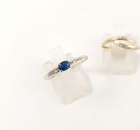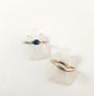 Bague en or gris 750 mil. centrée d’un saphir épaulé de diamants brillantés. TDD : 60. 1,8 g. brut + Bague en or 375 mil. (diamants 8/8). TDD : 52. 0,8 g. brut. Poids total brut : 2,6 g.