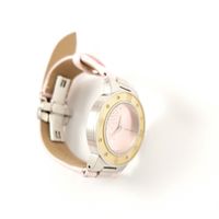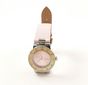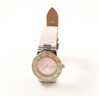 Montre-bracelet de dame MAUBOUSSIN, "Amour, viens voir si la Rose", en acier, boîtier rond, lunette nacrée à chiffres arabes et index diamantés, cadran rose rayonnant ponctué de diamants brillantés, mouvement à quartz, sur bracelet satin rose à boucle déployante papillon en acier siglée. (Diamètre : 31 mm environ).