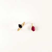 Bague et Pendentif en or 750 mil (saphir, racine de rubis). (TDD : 52). (Egrisures). 2,2 g. brut