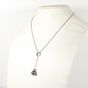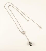 Collier en or gris 750 mil à maille forçat, retenant un pendentif mobile en or gris 750 mil à motif circulaire serti de diamants taille brillant et retenant en pampille une perle de culture grise. (Longueur collier : 41cm ; Hauteur pendentif : 5,5cm ; Diamètre perle : 9.7mm environ). 7,1 g. brut