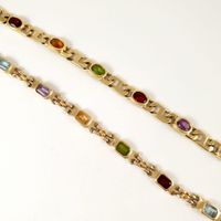 Deux bracelets en or 585 mil (pierres fines). (Lon