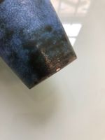 Jacques BLIN (1920-1995) Vase bouteille à petite anse circulaire en faïence, à décor incisé en noir d’une frise de volatiles sur fond d’émail bleu essuyé à patine noire. Signé “JBlin” sous la base. (Hauteur : 22 cm). (Petits éclats).
