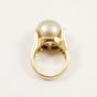 Bague en or 750 mil centrée d'une perle de culture (Diam : 13,2 mm environ) épaulée de diamants, les 4 griffres serties d'un diamant (TDD : 46). 9,9 g brut.