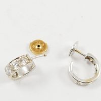 Paire de petites créoles en or gris 750 mil ornées de 5 diamants (Haut : 1,4 cm environ) (1 ct sur chaque) (1 système Alpa en or jaune, tige d'une boucle à redresser). 5 g brut.