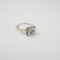 Bague en or gris 750 mil. à chaton carré serti de diamants brillantés (TDD : 52) (rhodiage à prévoir). 4 g. brut