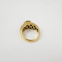 Bague jonc en or 750 mil. centrée d’un saphir ovale de 1,80 carat environ sur un pavage de diamants brillantés (TDD : 53) (légères égrisures). 8,5 g. brut