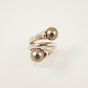 Bague trois tours en or gris 750 mil. ornée de deux perles de culture grises et de diamants brillantés (TDD : 57,5) (diamètres perles : 9,7 mm). 11,7 g. brut