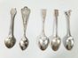 Collection de 19 petites cuillers souvenir en argent (9) et métal argenté (10), travail français et étranger du XXe siècle, comprenant : - 3 cuillers Minerve en argent 950 mil. dont 2 de CHOLET et ANGERS, la troisième à l’écureuil. Différents orfèvres et ancienne Minerve 1er titre. Poids : 36.4 g. L. 10 à 10.3 cm. - 6 cuillers étrangères en argent 750 mil, 800 mil et 830 mil. : 2 espagnoles bas titre (8.1 g et 15 g), 1 autrichienne de Vienne (8.9 g), 1 du Portugal (16.1 g), 1 hollandaise d’Amsterdam (13 g), 1 suisse d’Arosa (11.1 g). Exemptées Art. 524 bis al. b. Poids total : 72.2 g. L. 10.3 à 11.4 cm. Poids total d'argent : 108.6 g. - 10 cuillers souvenirs en métal argenté de 6 villes françaises (TOULON, AURAY, NANCY, PONT-AUDEMER, QUIBERON, BOULOGNE) et 3 régions françaises (BRETAGNE (2), MORVAN, COMMINGES). L : 10.8 à 13.3 cm.
